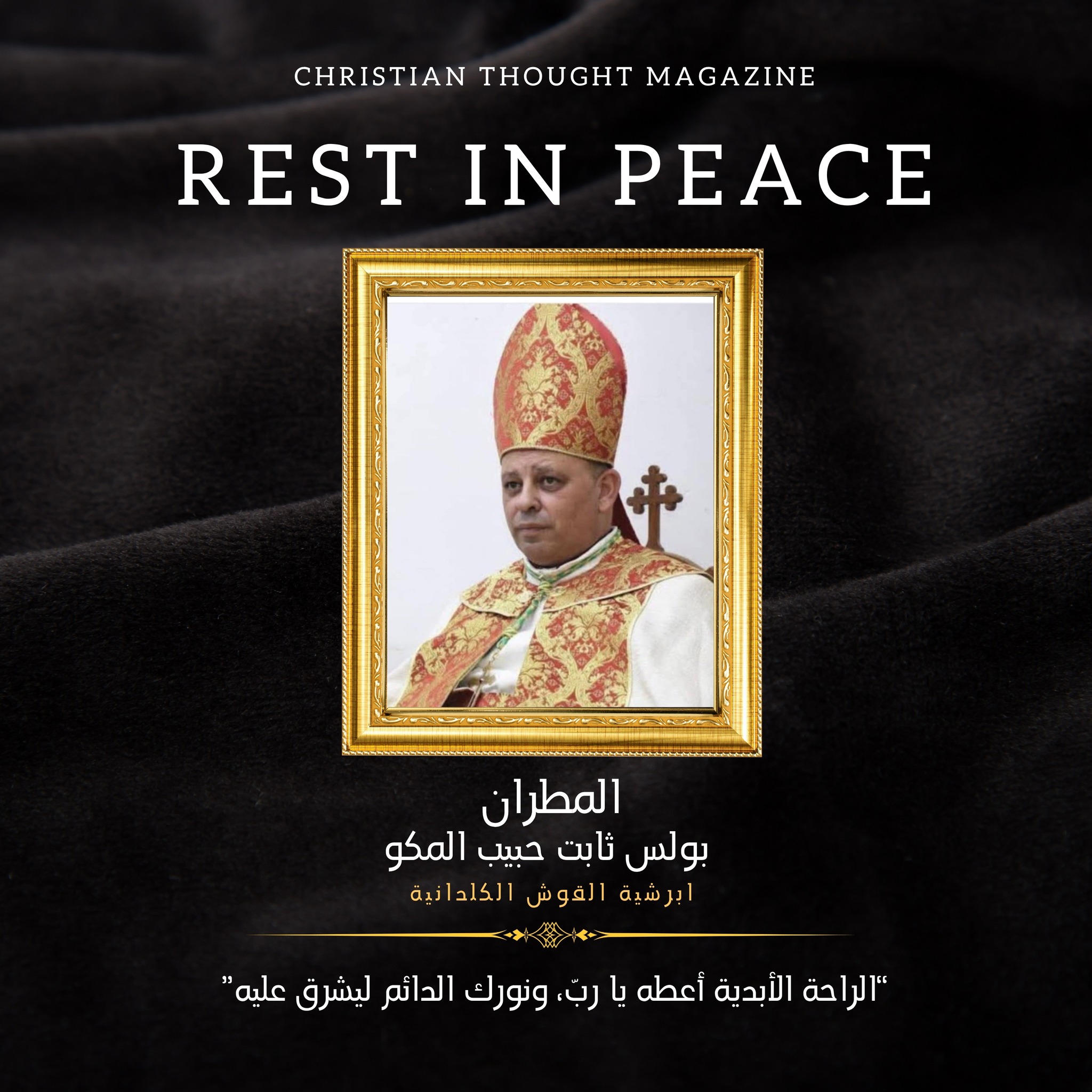 أنتقل ابن كرمليس البار، المثلث الرحمات مار بولس ثابت حبيب المكو ( مطران ابرشية القوش الكلدانية) الى ديار الرب بعد معاناة مع المرض الذي لم يمهله طويلا، بعد مسيرة ايمانية حافلة بالخدمة والعطاء والمحبة، عن عمر ناهز 49 عام.